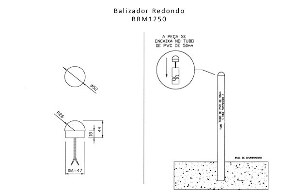 Dimensões: 50mm (diâmetro) com base de 50mm.