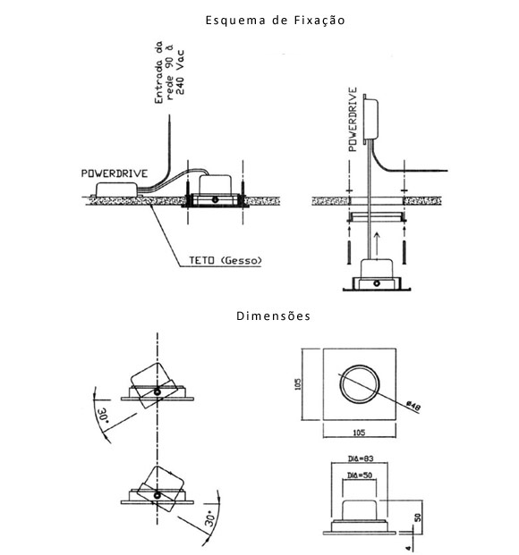 Alimentação: Bivolt Automático (90-240 Vac), com uso de Drive LED 3w.